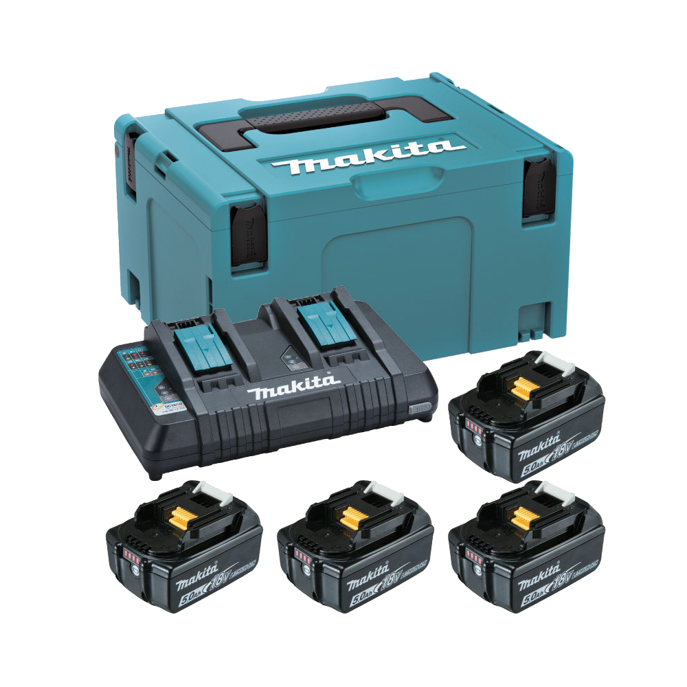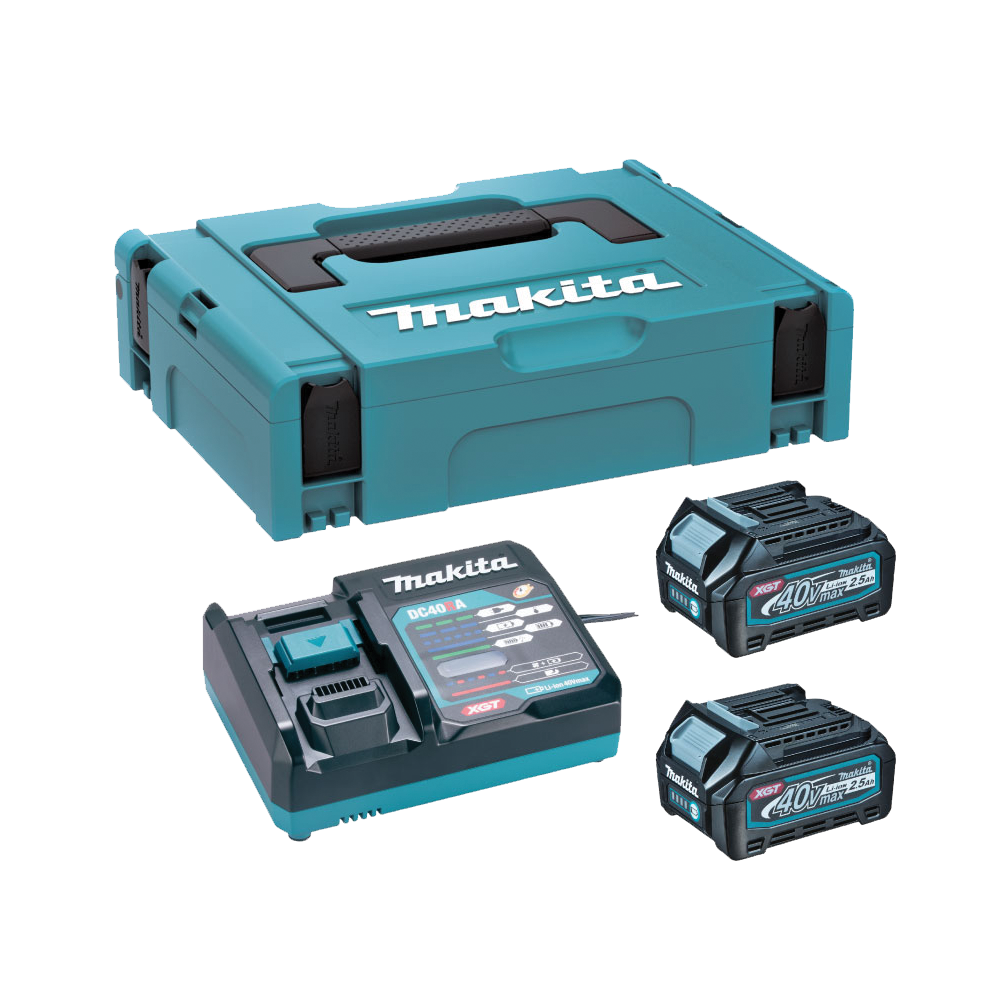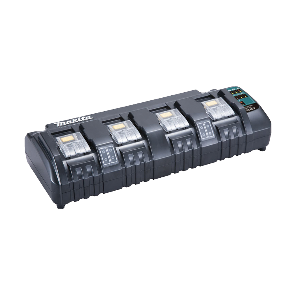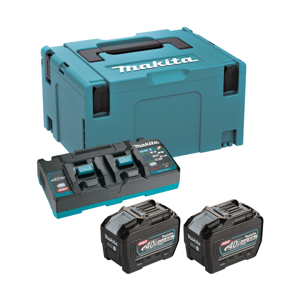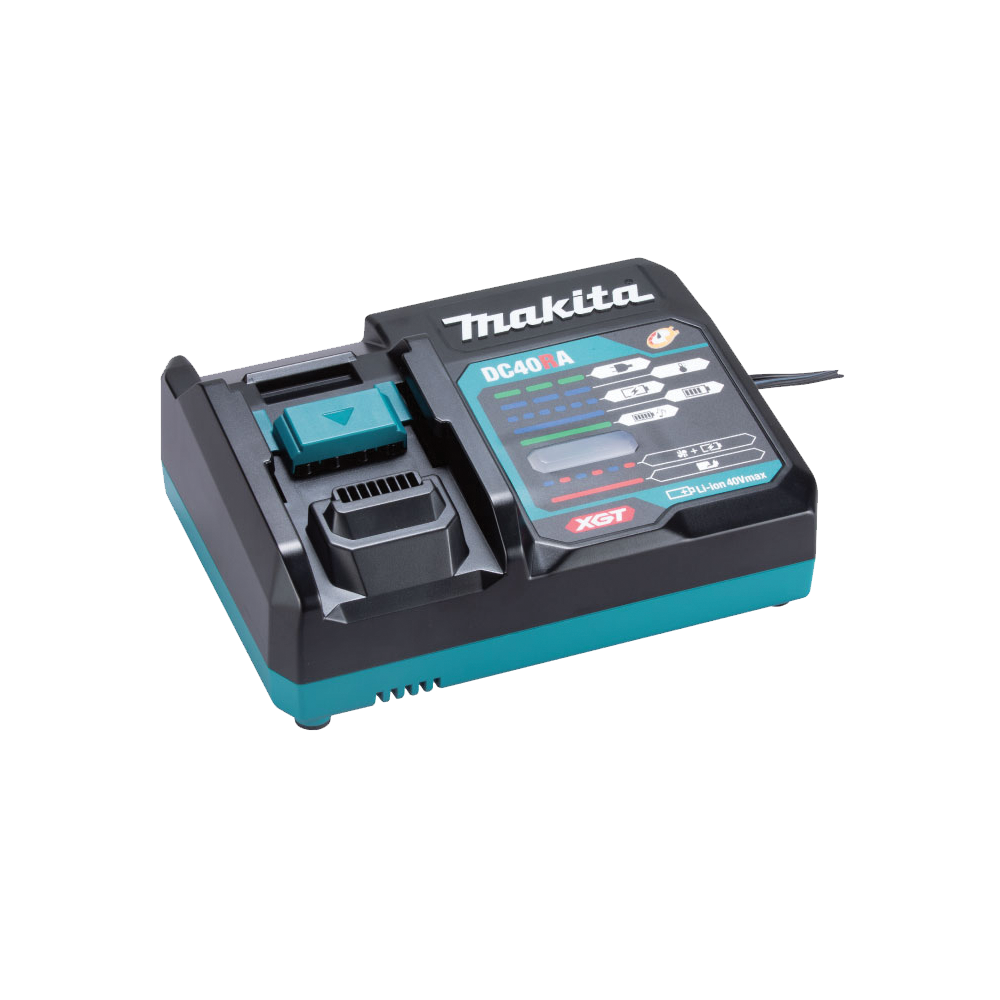 - เครื่องชาร์จสองพอร์ต Makita DC18RD สามารถชาร์จแบตเตอรี่ Makita 40V สองก้อนในเวลาเดียวกัน