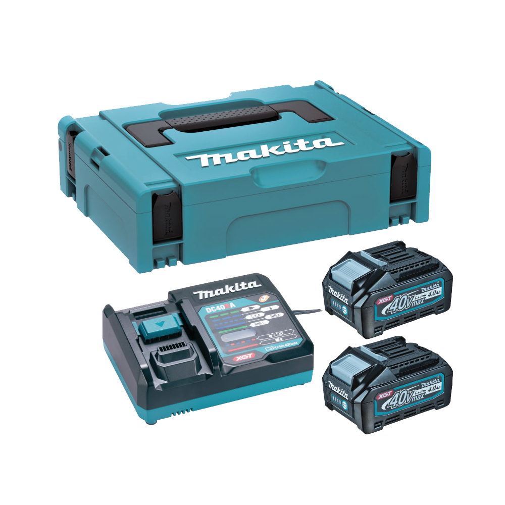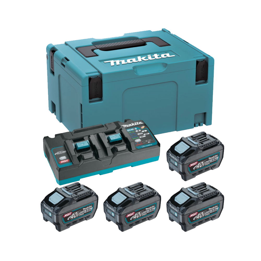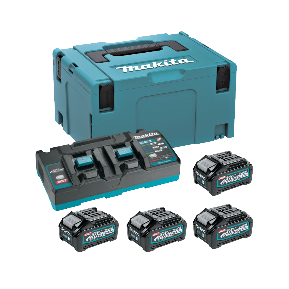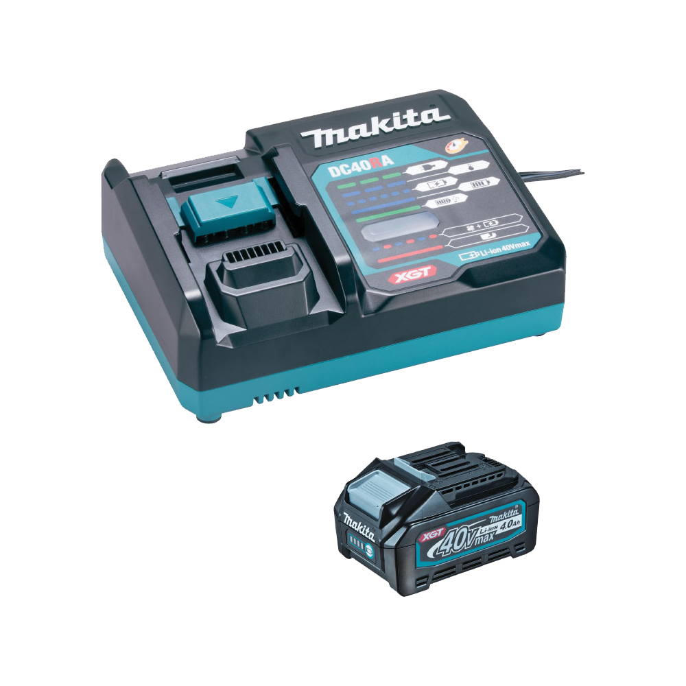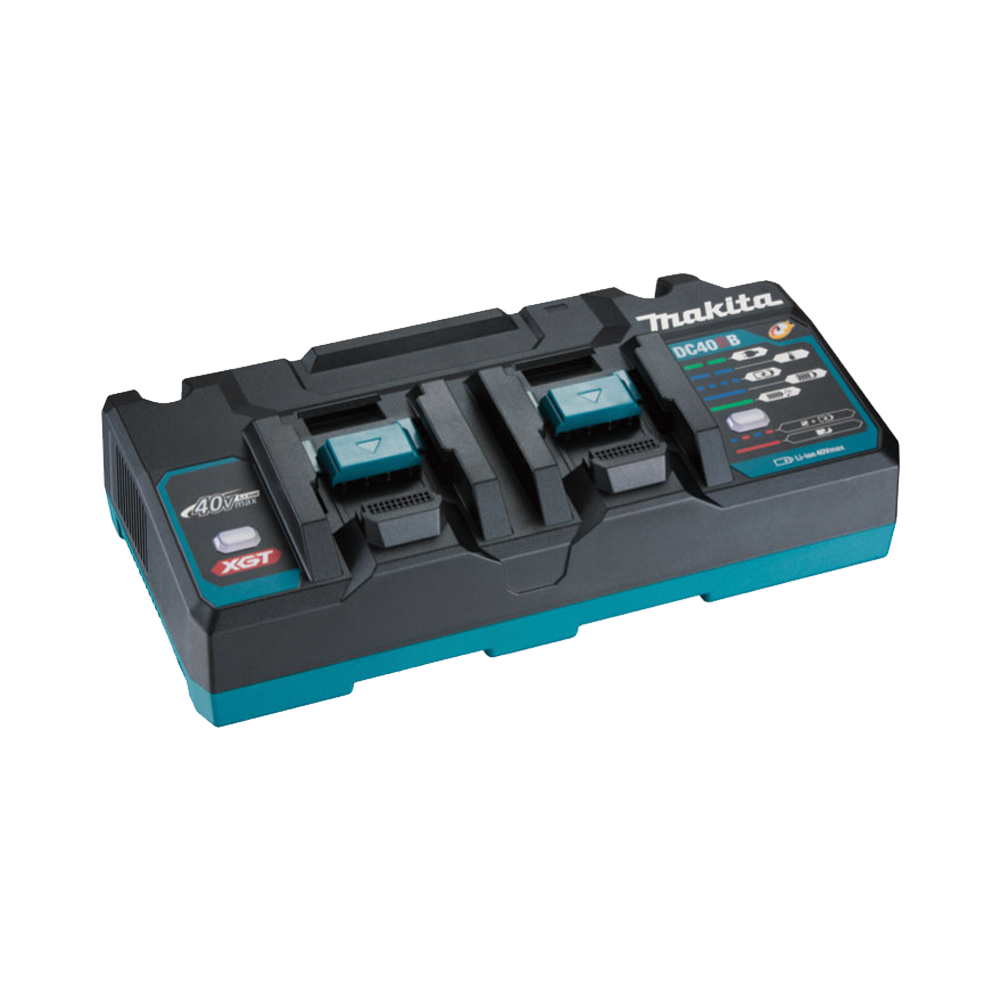 - เครื่องชาร์จสองพอร์ต Makita DC40RB สามารถชาร์จแบตเตอรี่ Makita 40V สองก้อนในเวลาเดียวกัน