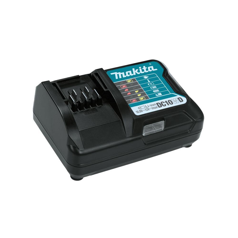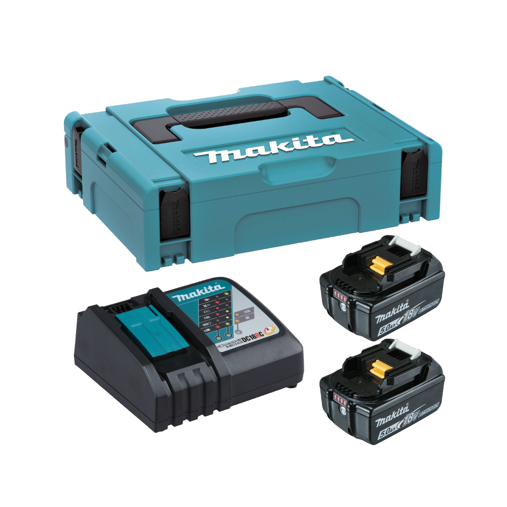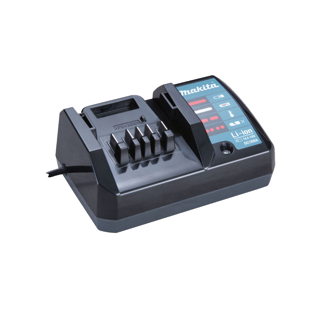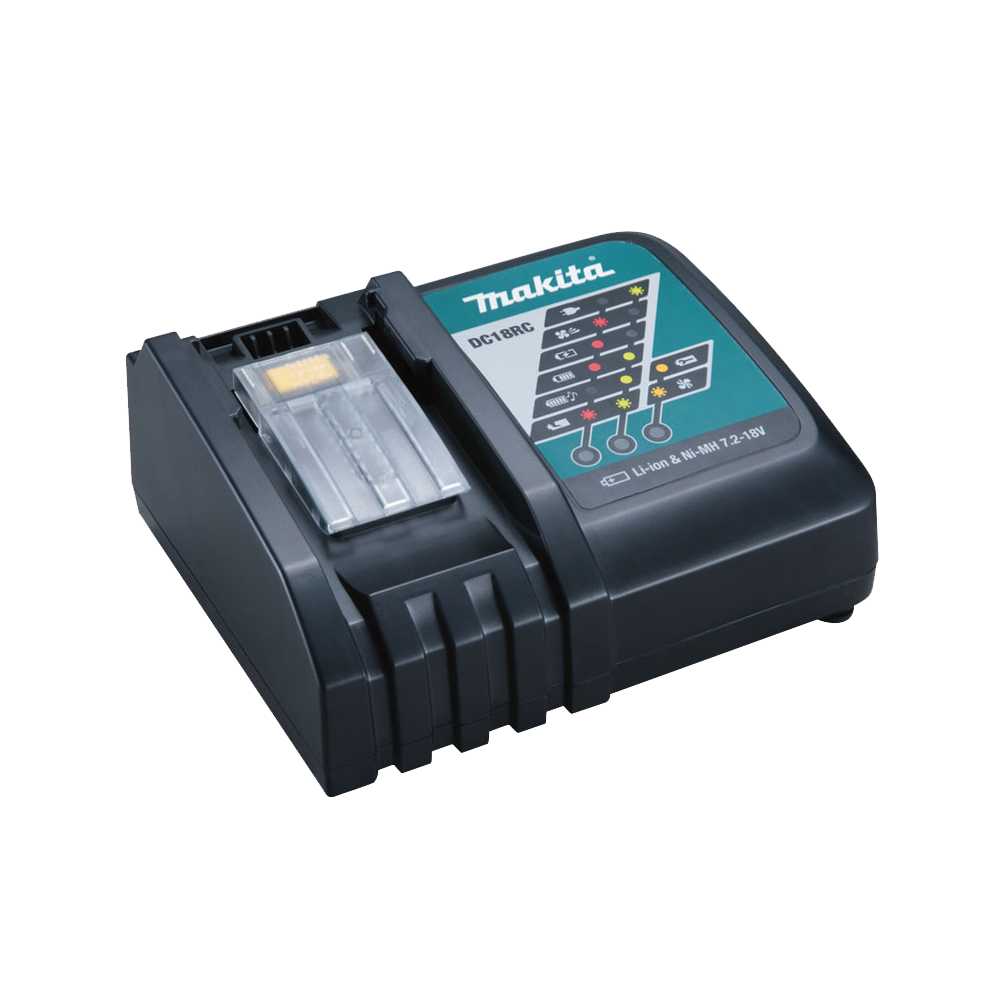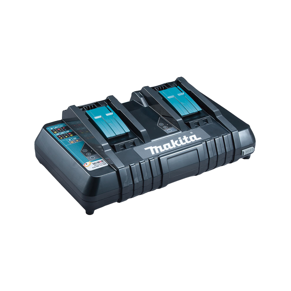- เครื่องชาร์จสองพอร์ต Makita DC18RD สามารถชาร์จแบตเตอรี่ Makita 18V สองก้อนในเวลาเดียวกัน